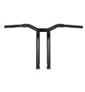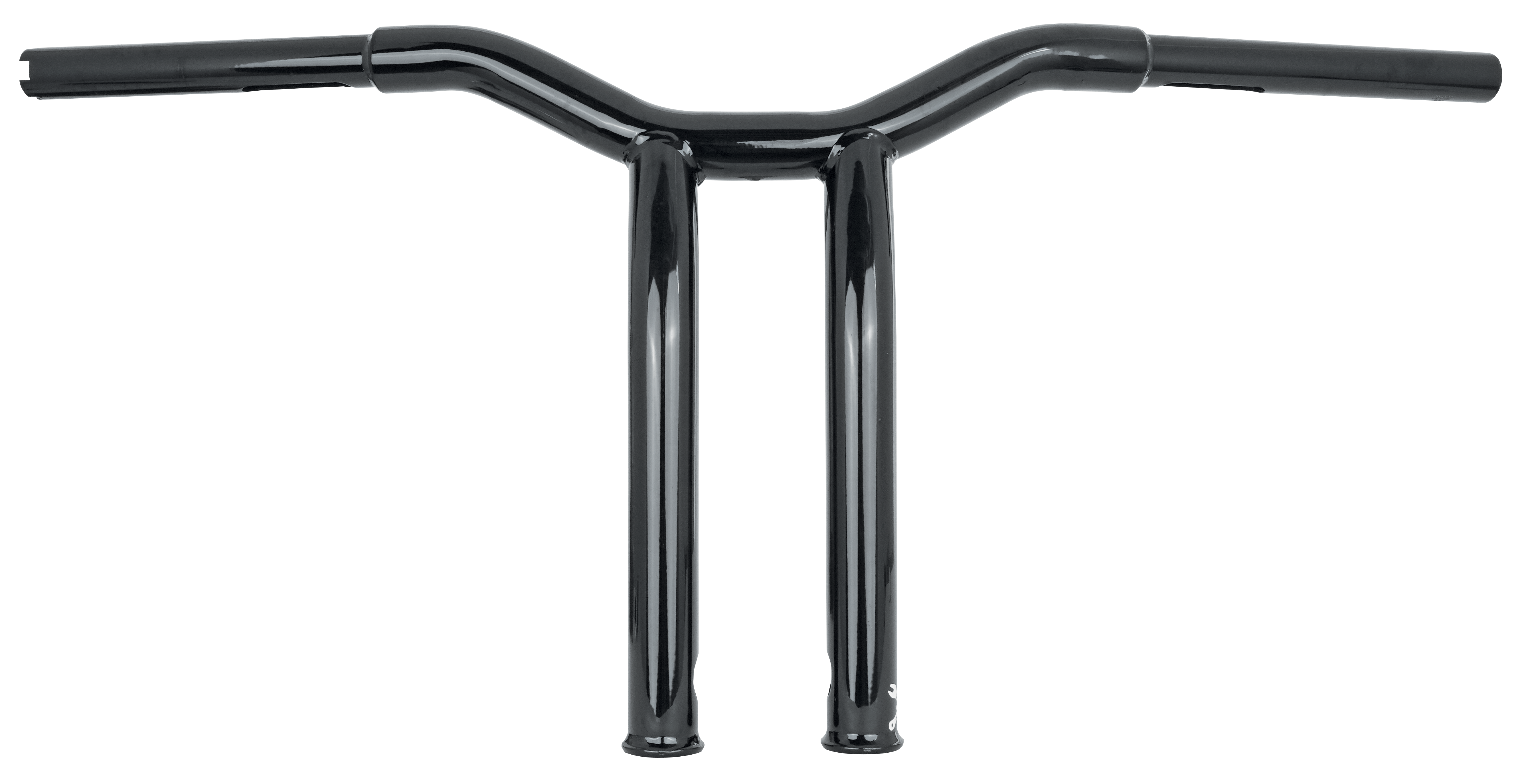 Filter thru lanes with ease! Our Dominator T-Bar delivers a responsive handling position without sacrificing comfort or looks. Choose between straight riser or raked riser versions to suit your desired riding style. The tube diameter is 1.25” stepped down to 1” for use with stock hand controls. Laser cut, welded, deburred, and slotted for easy internal wiring. The bars are crowned for electronic fly-by-wire throttle applications and polished to a show quality finish. Available in 10”, 12”, and 14” heights in a Black Powder Coat or a Black Matte finish. 12" and 14" bars require longer cables/lines/electrical for installation and will not fit models with integrated lower clamp.