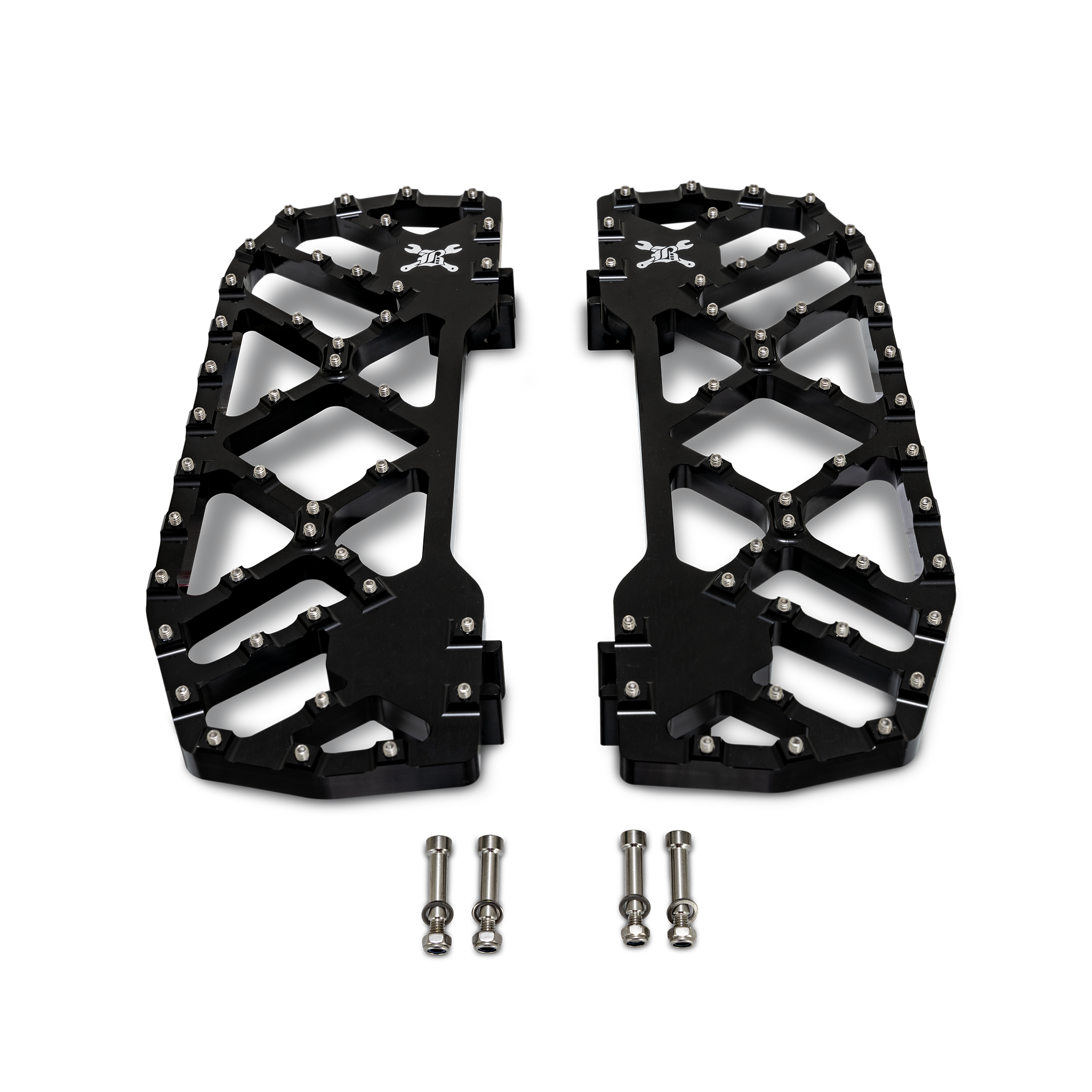 Crafted with precision CNC machining, the square design of our MX-Evo Floorboards showcases the Burly Brand logo, laser engraved with meticulous detail, standing as a mark of uncompromising quality. Each floorboard reflects reliability, whether you’re pushing stunts or enjoying a ride through the scenic backroads.